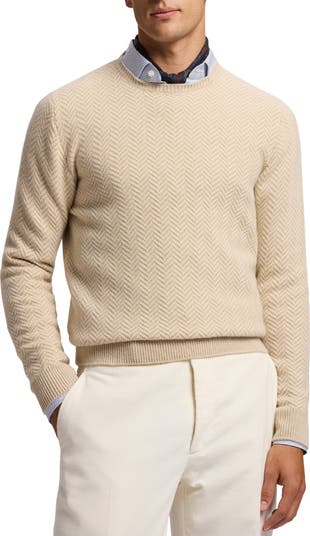 In a refined herringbone knit, this cashmere sweater is born from yarn crafted at a century-old Italian mill and finished to a sumptuously soft, velvety handfeel. Ribbed edges lend crisp definition that frames the silhouette.