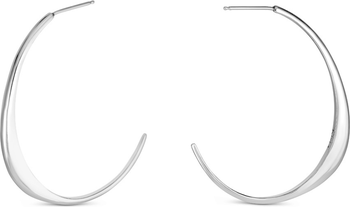 The Hiba Hoop Earrings bring a sculptural refinement to the classic hoop. Each earring sweeps into a graceful curve before tapering into a subtle point, creating a distinctive, architectural silhouette that feels modern and elevated.Handcrafted in recycled sterling silver, these sterling silver hoop earrings feature a smooth high-polish finish that reflects light with clean, mirrored clarity. Their streamlined form keeps them lightweight, making them comfortable everyday hoop earrings while still offering an understated yet impactful presence.