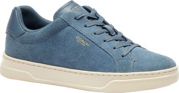 A glinting goldfoil logo stamps the velvety suede of a low-top sneaker designed in a clean-lined silhouette.