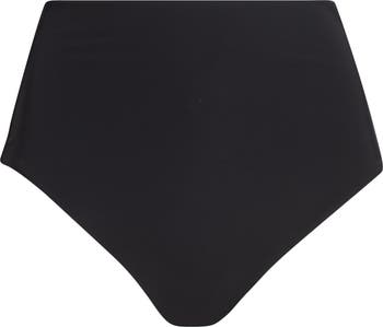 A high waist brings retro coverage to these sunny-day swim bottoms in a versatile solid black hue.