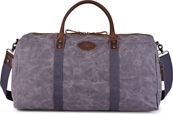 This durable beeswax canvas duffel offers rugged performance with genuine leather handles and versatile carrying options. Its spacious interior, organized pockets, and luggage sleeve make it ideal for weekend travel or everyday utility.