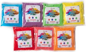 KULTURE KHAZANA - ALL NATURAL, WASHABLE, EARTH CONSCIOUS, HOLI NON-TOXIC COLOR POWDER 100 GM PACK OF 7. All-natural, washable, Holi Non-Toxic Color Powder 100 gm packs of 7 by Kulture Khazana is a great way to celebrate the Festival of Colors. Made with Food Grade ingredients, Easy to Clean, Earth conscious Holi Color Powder. Made from the finest quality food-grade ingredients to make your celebrations safe and fun. These were created by a mom because, you know - kids inhale this, put in their mouth, get it in places you can t imagine; so these powders will wash off everything and won t harm them. These bright color powders will wash away quickly from the skin and in the washing machine with detergent from your clothes. These bright color powders are the perfect way to celebrate Holi, color runs, fun runs, gender reveals. COLORS INCLUDED: Contains Red, Pink, Yellow, Orange, Green, Blue, and Purple. Great for Fun runs, school events, backyard, parties, and Holi. WASHABLE - You won t have to throw out your clothes or take 10 showers after using these colors. These will wash out in the washing machine, and come off your skin easily in the shower – BUT you won’t have to walk around looking pink, blue, and green! ALL - NATURAL - 100% food grade all natural, non-toxic ingredients. So you don t have to worry about safety and applying it for your color play. Enjoy Holi, color festivals, color runs, gender reveals, and backyard color plays without the toxins. When a MOM creates something, safety comes first! EARTH CONSCIOUS - Don t want your grass and lawn ruined after color play? US TOO!!! That s why we created these colors that are gentle on our greenery and good for the planet.