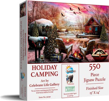 Step into a magical winter wonderland with SunsOut s "Holiday Camping" 550 piece jigsaw puzzle for adults. Designed by the talented Celebrate Life Gallery, this mesmerizing piece intricately captures the charm and serenity of holiday camping and the beauty of wintery landscapes, exuding a truly captivating artistry and festive essence. It s not simply a puzzle, but a high-quality, eco-friendly showpiece made in the USA, with every piece using soy-based inks on recycled cardboard. The integrated assembly of pieces, measuring 15" x 24", guarantees a smoother, less frustrating experience while creating a beautiful display of fully licensed artwork. SunsOut extends a worry-free guarantee, upholding high manufacturing standards and prompt resolution for any issues concerning missing or damaged pieces, thereby becoming a preferred brand among jigsaw enthusiasts. This exquisite, travel and animal-themed puzzle, appealing to the enchantment of Christmas, is the perfect gift for family or friends who cherish the creative and relaxing allure of puzzling, and comes beautifully packaged in a full-size, colorful display box. Choose SunsOut’s "Holiday Camping" puzzle to experience the seamless blend of art and leisure, all while embracing the joy of engaging, eco-conscious entertainment.