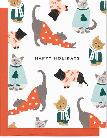 Bring a dose of festive charm to your holiday greetings with our Cat Pattern Holiday Boxed Set of 8 Cards! Featuring an adorable pattern of playful cats dressed in holiday sweaters, these cards are perfect for cat lovers. Printed on premium 130# bright white paper and crafted in the USA, this boxed set includes 8 matching red envelopes for a cheerful holiday presentation.