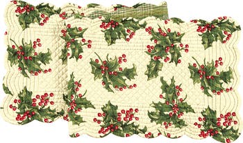Decked with boughs of holly on a festive ground, the Holly tabletop collection is part of the quintessential holiday tablescape. Designed in collaboration with artist April Cornell, this timeless style reverses to a green with red and cream plaid pattern. Perfect for decorating your home for the holidays, but versatile enough for the winter, Holly Red showcases a scalloped edge and hand guided stitching , proving once and for all that small details can make a big difference. Crafted of cotton, machine wash, tumble dry low.