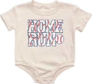 The Home Run Patch Short Sleeve Romper is a fun and sporty romper for any baseball fan!