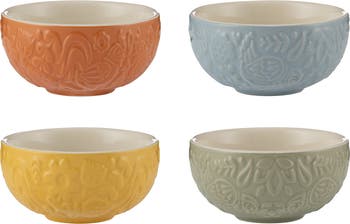 Home to Roost Mini Bowl Set, 4 Ceramic Prep Bowls with Hen and Cockerel Designs
