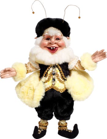 The Honey Bee Elf, Medium (18 Inches) is a cheerful and whimsical collectible figure dressed in a delightful bee-inspired outfit. Its detailed costume features plush yellow and black fur, sparkling gold embellishments, and playful accents like beaded antennae and pointed shoes. With a joyful face, round glasses, and open arms, this charming elf brings a touch of magic and sweetness to any holiday or springtime décor.
