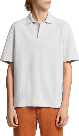 A honeycomb knit of supersoft, breathable cotton and a sleek one-button closure elevate the look and feel of this short-sleeve polo.