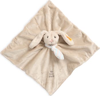 This Hoppie Rabbit lovey blanket is not only adorable, it’s also especially gentle on baby’s delicate skin. Hoppie s embroidered face radiates charm, while her long ears and cozy plush fabric invite baby to feel and explore.