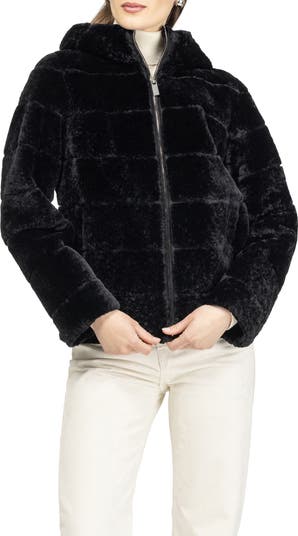 The Horizontal Genuine Shearling Zip Jacket with Hood is perfect for everyday wear, combining cozy warmth with practical style.