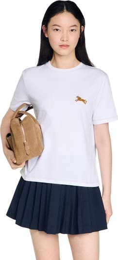 Cotton T-shirt with a round neck and short sleeves, embellished with a horse embroidery on the chest.