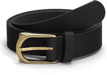 A classic 100% leather belt with a unique, horseshoe inspired solid brass buckle, designed for daily wear by men and women.