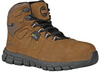 Designed for workers who need serious protection without added weight, the HOSS Tikaboo Composite Toe Met Guard Work Shoe delivers lightweight performance with dependable safety. This work shoe features a static dissipative composite safety toe, providing reliable impact and compression protection while maintaining a lightweight, non-metallic design. The full-grain tumbled leather and ballistic nylon upper delivers durable wear with a clean, work-ready look. An internal XRD metatarsal guard adds critical forefoot protection in high-risk environments. Weighing approximately 21 ounces, the Tikaboo reduces fatigue during long shifts, while a padded tongue and collar enhance comfort. Underfoot, a premium PU memory foam insole cushions each step, and an EVA midsole paired with a slip-resistant rubber outsole tested for oily and wet conditions with a .46 coefficient of friction delivers stable traction across demanding work surfaces.