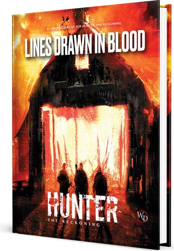 HUNTER: THE RECKONING 5TH EDITION ROLEPLAYING GAME LINES DRAWN IN BLOOD CHRONICAL BOOK - What lines are you willing to cross when you push back against the evil that walks among us? Lines Drawn in Blood presents a series of four stories that can be played individually or linked together to tell an entire chronicle. Pressure Test: Ghostly incursions are far more than the weight of individual sorrow. Outsiders: The residents of a small town break an ancient pact and pay the price. Blur the Lines: Occult symbols at a murder scene drag Hunters into a race against time. Alone in the Dark: Far from city lights, a nest of monsters pull the strings of a lonely northern town.