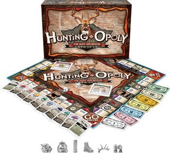 Buy dream hunting locations, put up cabins and lodges and charge other players to hunt on your land. Sounds easy enough but add in a hunting violation, a bad duck call, and a long haul in a tree stand and it s a little more difficult - and a lot more fun! Choose your token and advance to Go Huntin . Who knows! You may soon be hunting in Big Sky Country... or you may be out of the game for eating too much crock pot possum! Whatever happens the hunt is on and you just might become THE ULTIMATE HUNTER!