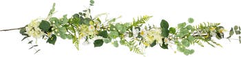 This artificial spring garland will add some greenery to your mantles with its leaves of Fern and Eucalyptus. It provides a touch of nature as it is also designed with white Cosmos, Hydrangeas, and Daisy flowers. Berries. and flower buds are intricately placed throughout. Display over doors and archways. With no need for water or maintenance, it makes a long-lasting investment and also a thoughtful gift. Features: Floral and foliage Spring garland Fern and Eucalyptus leaves throughout Petite white and yellow flowers and berries Daisy, Cosmos and Hydrangea flowers throughout No maintenance or watering required Care instructions: wipe clean with a soft dry cloth Bendable wire center allows you to shape the garland any way you desire Recommended for indoor use - if using outdoors place under a covered area Dimensions: 5 long Materials: plastic/polyester/wire Note:Branches are compressed for shipment, and need to be fluffed out upon arrival to look like the photo.