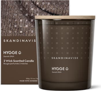 Black tea and mint leaves, dried apples and a dusting of baked cinnamon. Special edition 2 wick scented candle in seasonal design and hard gift box. Wax sourced from Swedish rapeseed oil that is sustainably farmed and non-GMO, and blended to burn stably and slowly with the lowest environmental impact. Vegan and cruelty free blend. Poured into a painted glass votive with 2 pure cotton wicks and engraved FSC-certified beechwood lid. Packaging box and sleeve from managed Nordic forests with natural colour dyes. 350 g, up to 50 hours of burn time. Reuse with tealights or for storage. HYGGE - Danish for ‘cosiness’ A word with no direct translation but with infinite meaning, and a reflection of the Scandinavian art of creating intimacy, fellowship and cosiness in the smallest everyday moments.