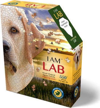 - AWARD-WINNING AWE-INSPIRING: Madd Capp puzzles are big and beautiful and way more fun than your average 550 -piece jigsaw! I AM LAB has a Labrador Retriever Head-shaped border (28" x 30" assembled).