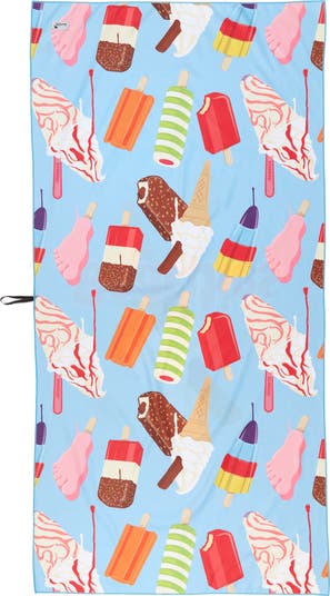 Ice cream treats sweeten a soft, quick-drying towel that will any will brighten any pool or beach day.