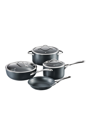 The Cuisine::pro® iD3® Hard Anodized 7-Piece Cookware Set includes essential frypans, saucepan, casserole, and chef pan for everyday, high-performance cooking.