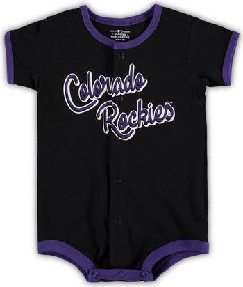 Your little one is ready to play any position with this charming Colorado Rockies romper. This Power Hitter piece features a clean Colorado Rockies design and contrast-color trim for an adorable getup. The full-button front allows for a quick and easy game day outfit.