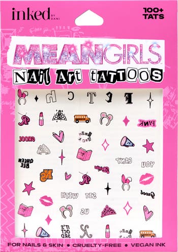 What it does: Get your nails so fetch with the new Mean Girls nail art tattoos! This set brings all the sass and style of the Plastics right to your fingertips. Apply with just water in seconds—works on natural nails, over polish, gel, acrylic and press-on nails! Seal on nails with a clear topcoat for a seamless, salon-quality look. The self-expression is limitless; apply tattoos on both nails and skin! Because your nails deserve their own drama.