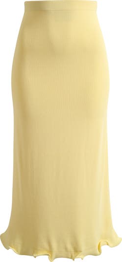 A playfully ruffled hem frames this lightweight sweater-skirt that perfectly merges sweet style with easy-wear comfort.