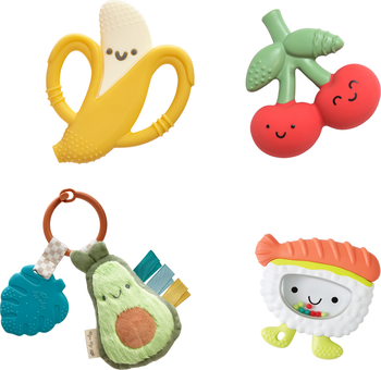 - Itzy Pal Annie the Avocado! The Itzy Pal joins your little one as the most playful (and cutest!) pal on the block! Let baby discover the soft plush character, gentle silicone teether to soothe sore gums, engaging crinkle sounds and colorful textured ribbons. Comfort CrewChew on this! Babies will experience pure relief with our natural rubber Comfort Crew! This soft squeezable teether is designed to massage and soothe sore gums the natural way—pure and simple! Chew Crew Beckett the Banana! Bid farewell to teething troubles with Itzy Ritzy’s Chew Crew. Crafted with easy-to-hold handles, this teething companion offers soothing relief with a comfy grip for your baby`s teething journey. Features: - Soft silicone similar to pacifiers and nipples - Easy-to-hold design - BPA and PVC free Sweetie Shake Plus Get ready for triple the fun with theSweetie Shake Plus. The soft silicone teether, colorful dancing beads andgentle rattle sounds are perfect forsensory seekers tiny to toddler.