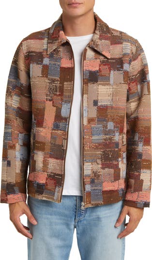 A distinctive jacquard-woven patchwork pattern brightens this jacket in a weighty cotton blend that keeps you warm as the temps begin to dip.