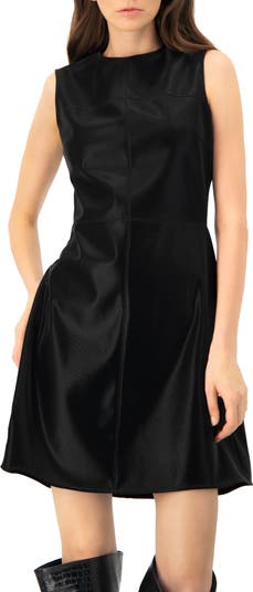 Short sheath dress featuring a round neckline and sleeveless design.