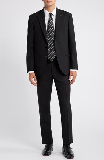 Move with ease in this lightly constructed suit cut from stretch-kissed Italian wool and punctuated by a woven pin on the lapel for signature detail.