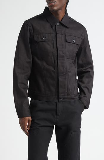 From the NYC startup comes this midnight-black cotton trucker jacket sewn with minimalist precision and hidden utility by way of interior pockets and backpack-style straps for carrying as easy as wearing.