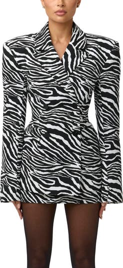 Chic zebra stripes embolden this polished figure-sculpting blazer made in a classic double-breasted silhouette.
