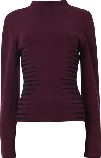 This fitted top blends comfort and style with its textured striped jacquard knit. The long, wide sleeves add a subtle statement, while the back invisible zip keeps the look clean. Pair it with matching skirt.