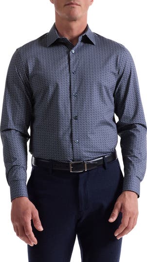 Diagonal chevrons add cool dimension to a knit sport shirt cut from wrinkle-resistant, eight-way-stretch OoohCotton to keep you polished and comfortable. The breathable, double-mercerized knit fabric dries quickly for moisture-managing softness and consistent body temperature.