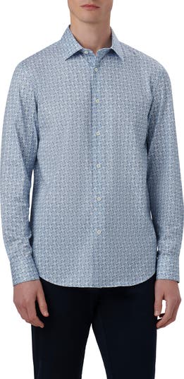 A smart geometric print patterns a sport shirt cut from breathable, eight-way-stretch OoohCotton that resists wrinkles to keep you polished and comfortable. The double-mercerized fabric dries quickly for moisture-managing softness.