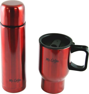 The Javelin 2-Piece Double Wall Thermos and Travel Mug Gift Set in Red is a great travel companion. Perfect for any hot or cold beverage, this bold set features a double-wall vacuum for optimal temperature retention for an extended period of time. With this practical pair, you can take your favorite beverages on-the-go worry and spill-free!Includes one 16 oz. thermos and one 15 oz. travel mugThe Thermos measures in at:9.5 x 2.5 x 2 - 10.85oz weightThe Thermos has a fluid capacity of 16ozThe travel mug measures in at:6 x 5 x 2.5 - 7.80oz weightThe travel mug has fluid capacity of 15oz