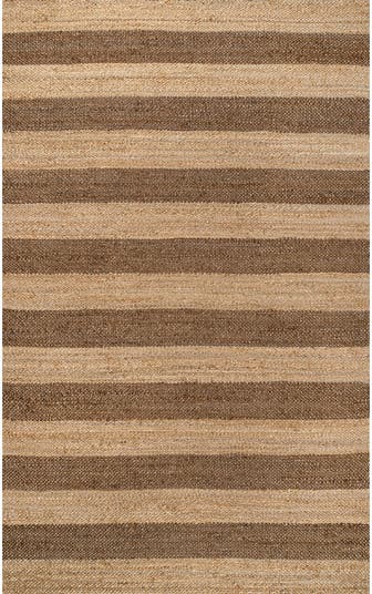 Jayden Rustic Farmhouse Woven Jute Stripe Area Rug