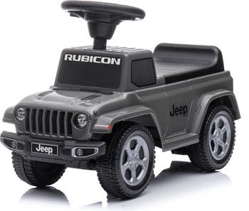 - Get your little one ready for adventure with the Jeep Rubicon Foot to Floor ride-on toy. Suitable for children aged 1 to 3 years, this ride-on is designed to inspire active play and imagination. It features realistic engine sounds and has a handy storage compartment under the seat for toys. The durable PP construction and wide tires provide stability for safe play indoors and outdoors. This ride-on is available in red, white, grey, and pink, making it the perfect gift for any young explorer.