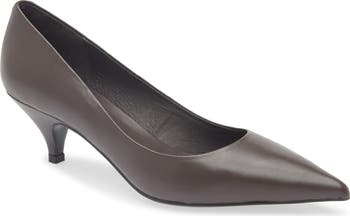 A pointy toe furthers the streamlined profile of a wear-anywhere leather pump set on a modest heel for a whisper of height.