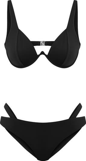 Bikini top make you feel eye catching. Unique designed asymmetric shoulder cross strap adorned with cut out. Also includes adjustable straps that provide a customised fit.Picture yourself on a yatch wearing this exclusive bikini.bikini bottom features asymmetric straps for added style. Whether you are lounging by the pool or taking a dip in the sea this unique piece make you feel confident and glamorous