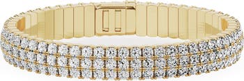 Three rows of 162 brilliant lab-created diamonds bring beautiful sparkle to this polished bangle rendered from 18-karat gold.