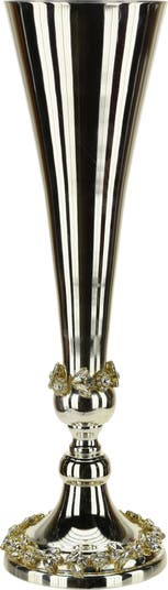 The Mark Roberts Jeweled Fluted Silver Base 16.5" features an elegant fluted silhouette finished in a luminous silver tone for a refined, upscale look. Sparkling jeweled accents add dimension and sophistication, making it a striking decorative accent on its own or paired with seasonal décor. Perfect for tabletops, mantels, or displays, this piece brings timeless glamour to any space.