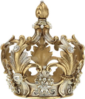 The Mark Roberts Gold Jeweled King’s Crown (10") is a regal decorative accent crafted with rich gold tones and intricate detailing. Adorned with sparkling jeweled embellishments, it brings an elegant, royal touch to holiday displays or collectible décor. Perfect as a statement piece, this crown reflects the signature craftsmanship and luxury Mark Roberts is known for.