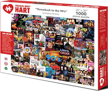 Culturally, the 1990s are characterized by the rise of multiculturalism and alternative media. We enjoyed amazing movies like “Titanic”, “Toy Story” and who can forget TV shows “Friends”, “The X-Files” and “Law and Order”. Look for those and many more in this 24”x 30” 1000 piece premium puzzle. By artist Stephen M. Smith, you can take a nostalgic look back at this decade. This puzzle is great for an individual to enjoy their free time or a great family activity. The subject matter will surprise and delight a wide range of individuals. Also makes a great gift because of the subject matter and imagery.