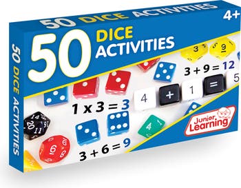- Teach math skills with dice with 50 double sided activity cards.