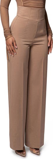 Tonal seaming gives a panelled look to these straight-leg pants with a high waist that s nipped in by vertical seams.