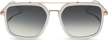Stainless steel frames shape retro-cool navigator sunglasses fitted with gradient CR-39 lenses and detailed with signature logos at the temples.
