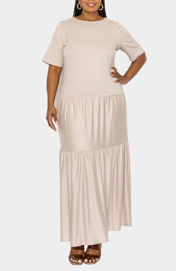 Flouncy tiered ruffles lend graceful movement to this versatile day-to-night maxi.